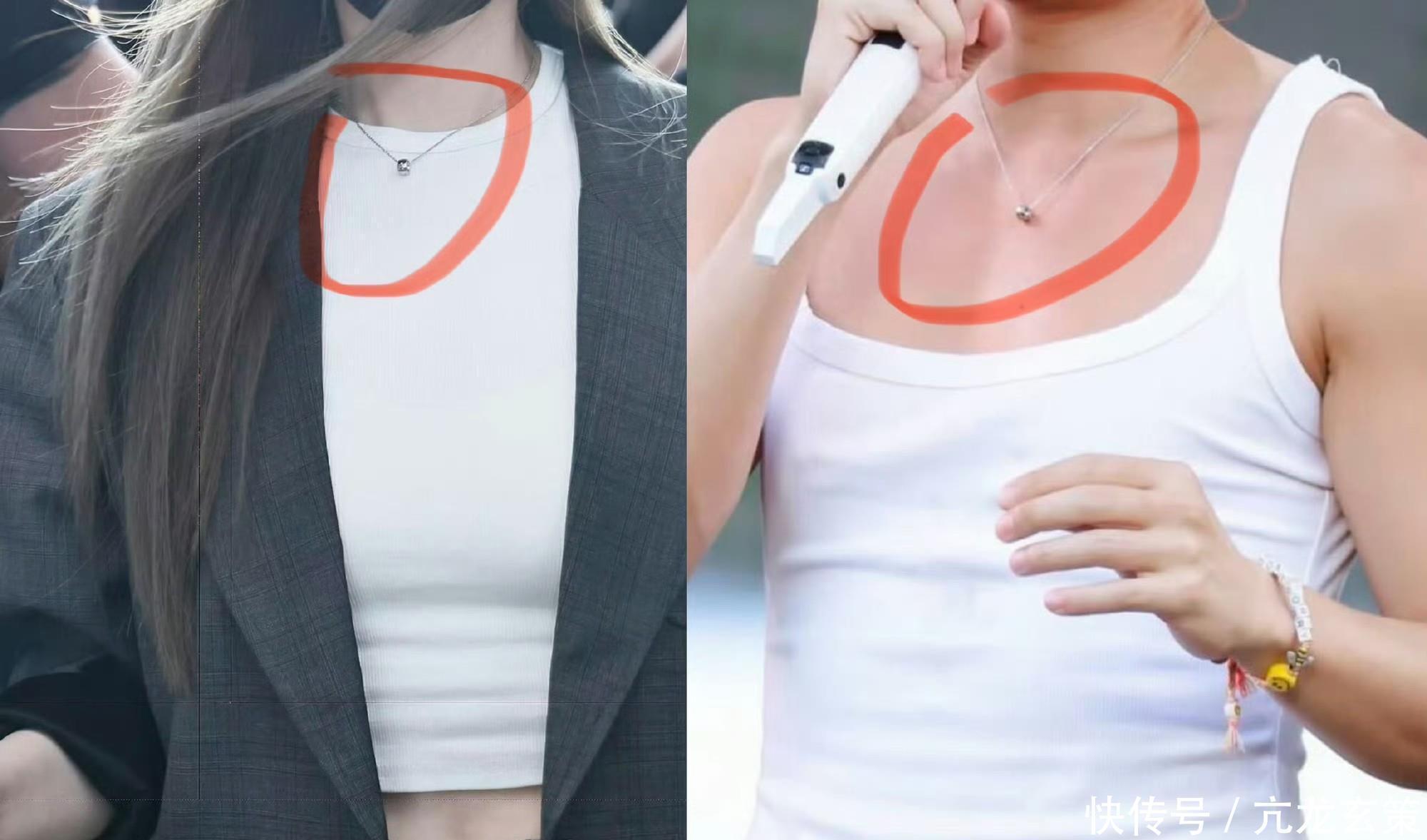 然后网友当时还抓出了不少蛛丝马迹像在公共场合时,都戴过相同的项链。